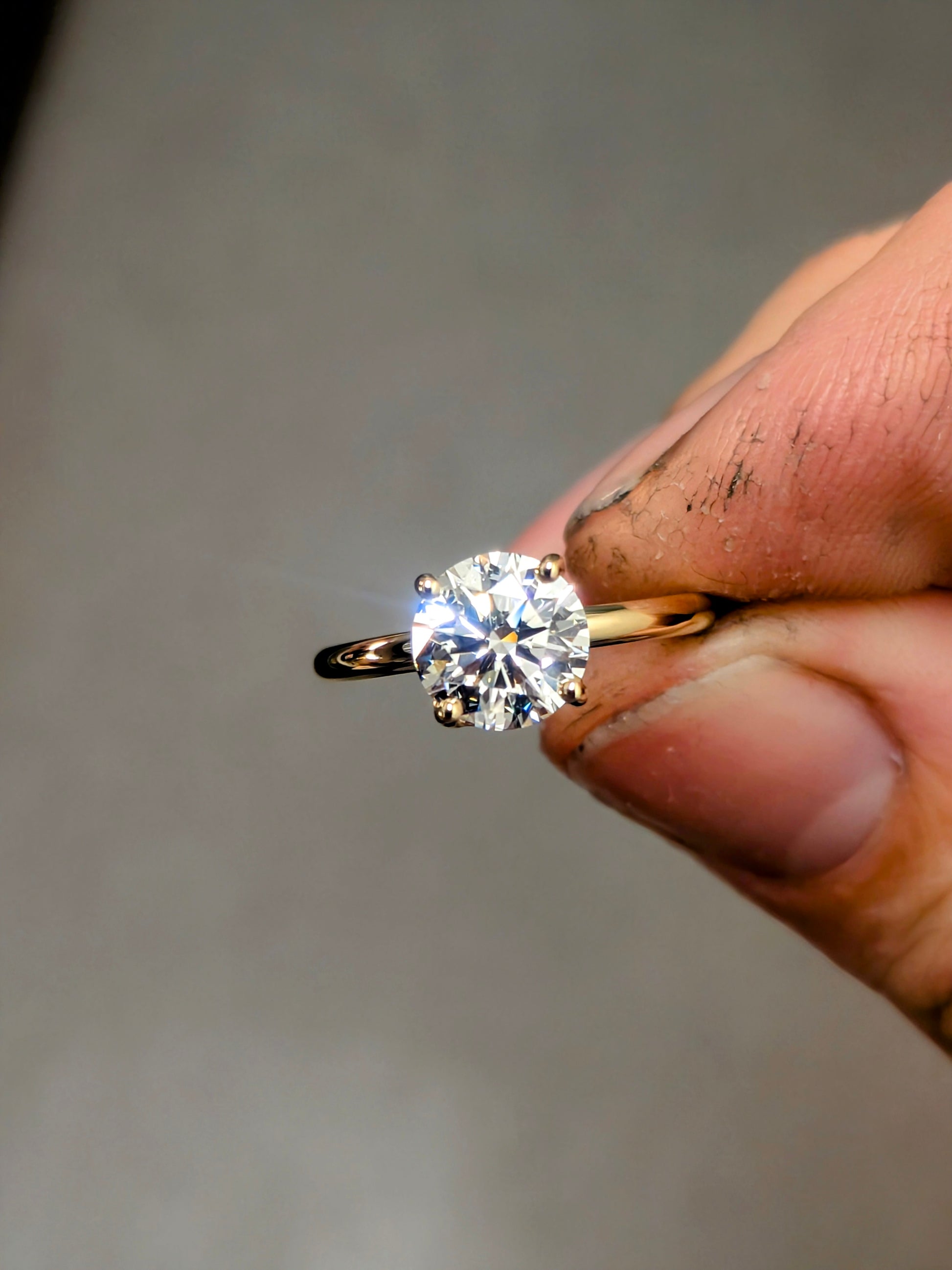 A truly classic design, 1.70ct Lab grown diamond, meticulously handmade with a sophisticated four-claw setting and a comfortable, full-round profile shank in 18ct yellow gold.