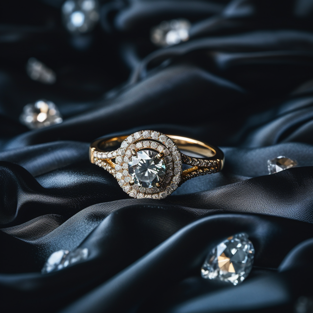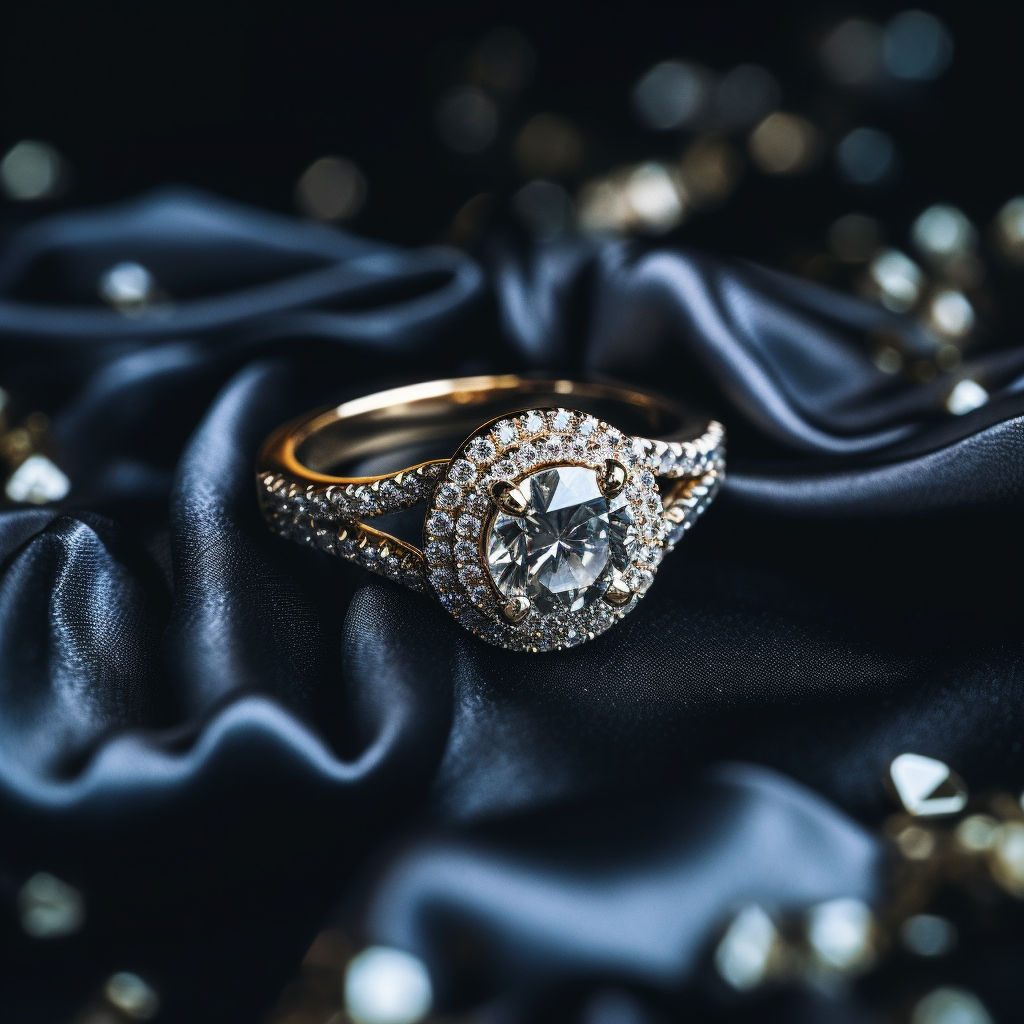 A classic double diamond halo engagement/dress ring. Centre stone is set in a timeless 4 claw setting with accent diamonds on a split shank.